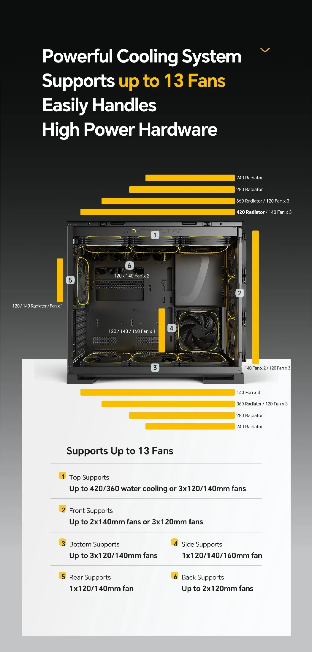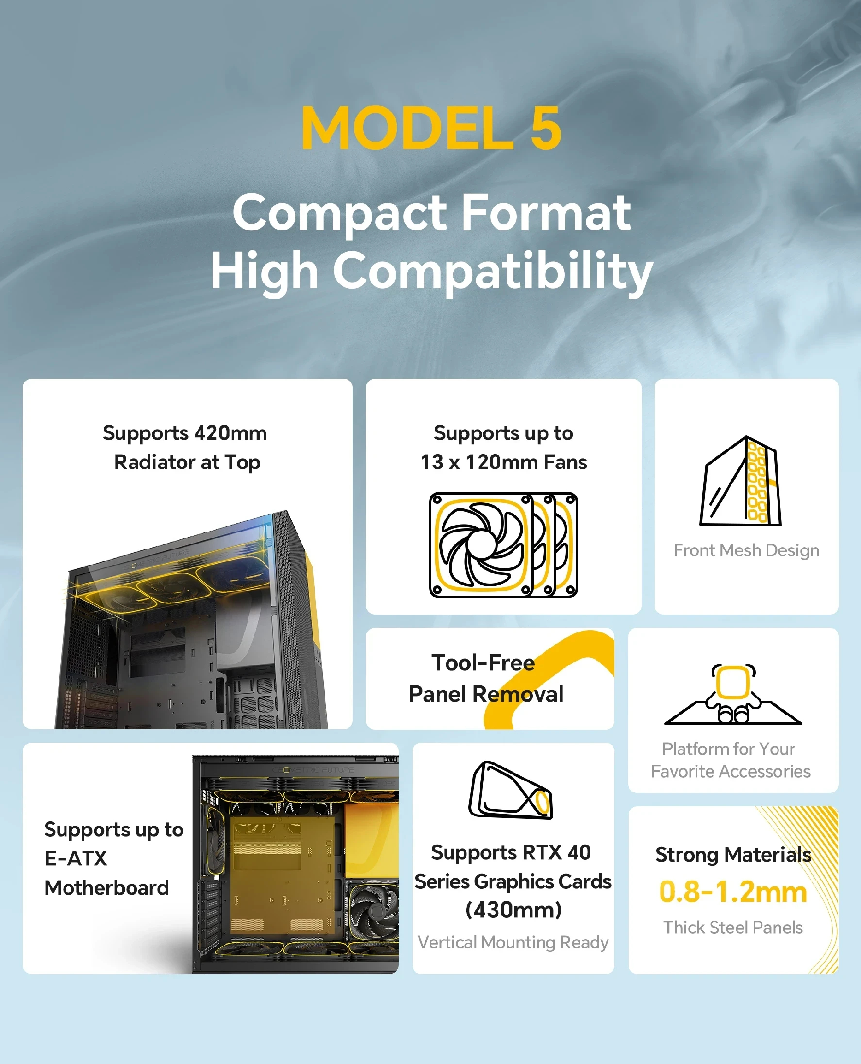 Geometric Future Geometric Future кутия Case EATX Model 5 Black/Yellow 5 x 140 mm aRGB fans included - GEO-M5F-BY