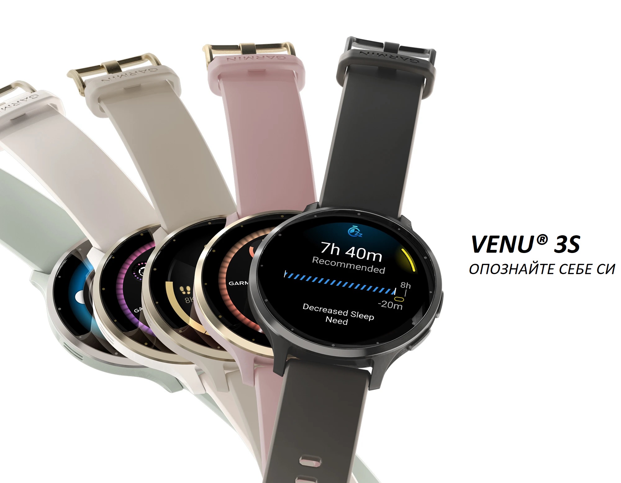 Garmin Venu 3S, 1.2" (3.04cm) AMOLED дисплей, 41 мм, до 10 дни време на работа, 5ATM, Bluetooth, ANT+, Wi-Fi, GPS, пулсомер, следене на съня, черен безел с тъмносив корпус, 010-02785-00