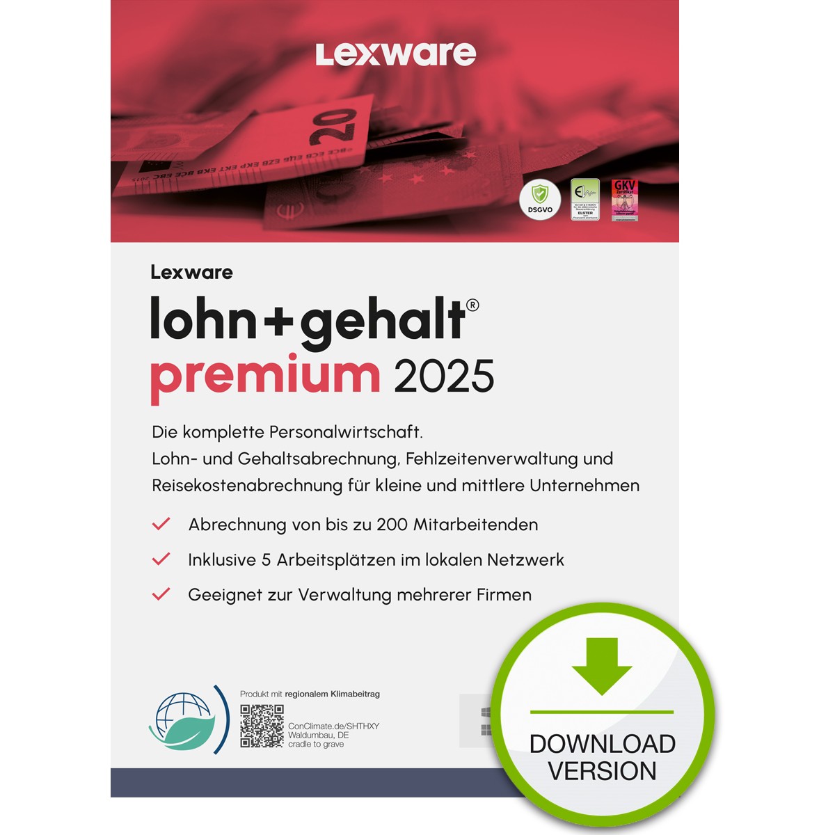 Lexware Lohn+Gehalt Premium 2025 - 1 Device, ABO - ESD-DownloadESD - (К) - 02024-2035 (8 дни доставкa)