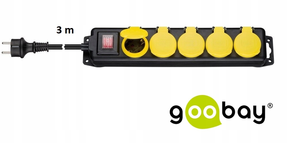 Разклонител 5 гнезда със защитни капачета, устойчив на пръски, 3 м кабел, черен, 45194