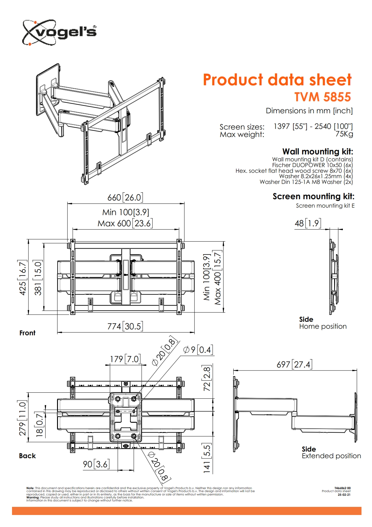 Vogel's TVM 5845 ELITE Стойка за TV 55-100", с две рамена - TVM 5845