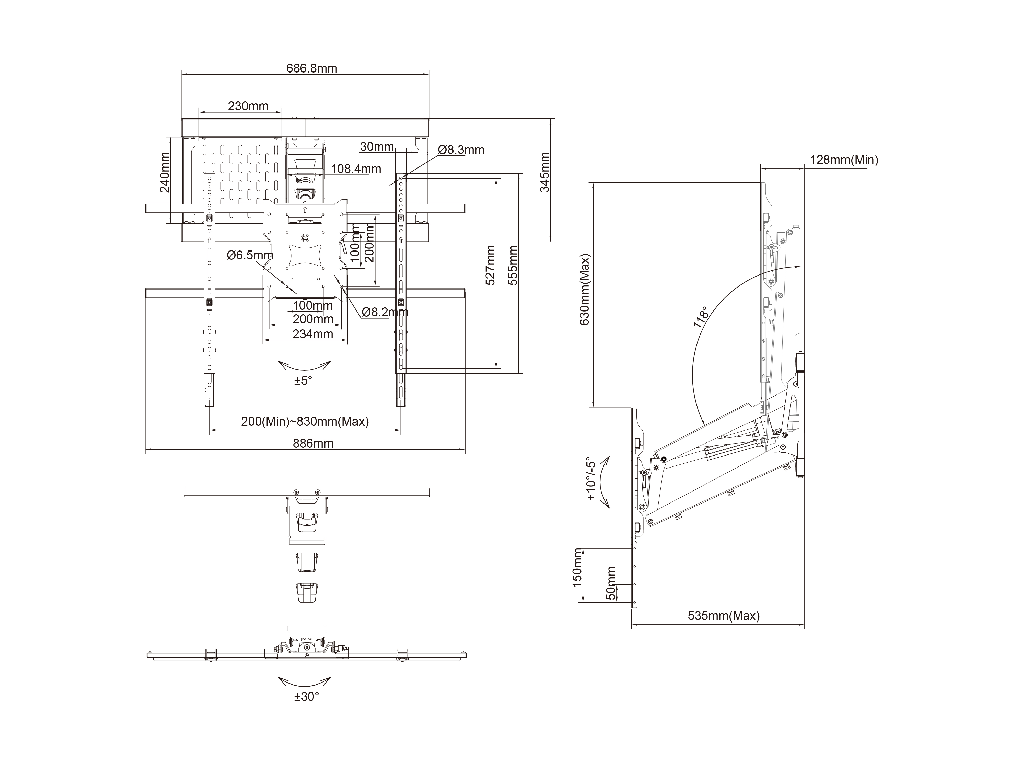 MB2647 Стойка за стена за TV,48"-69", до75кг, въртене до 180° - MB2647