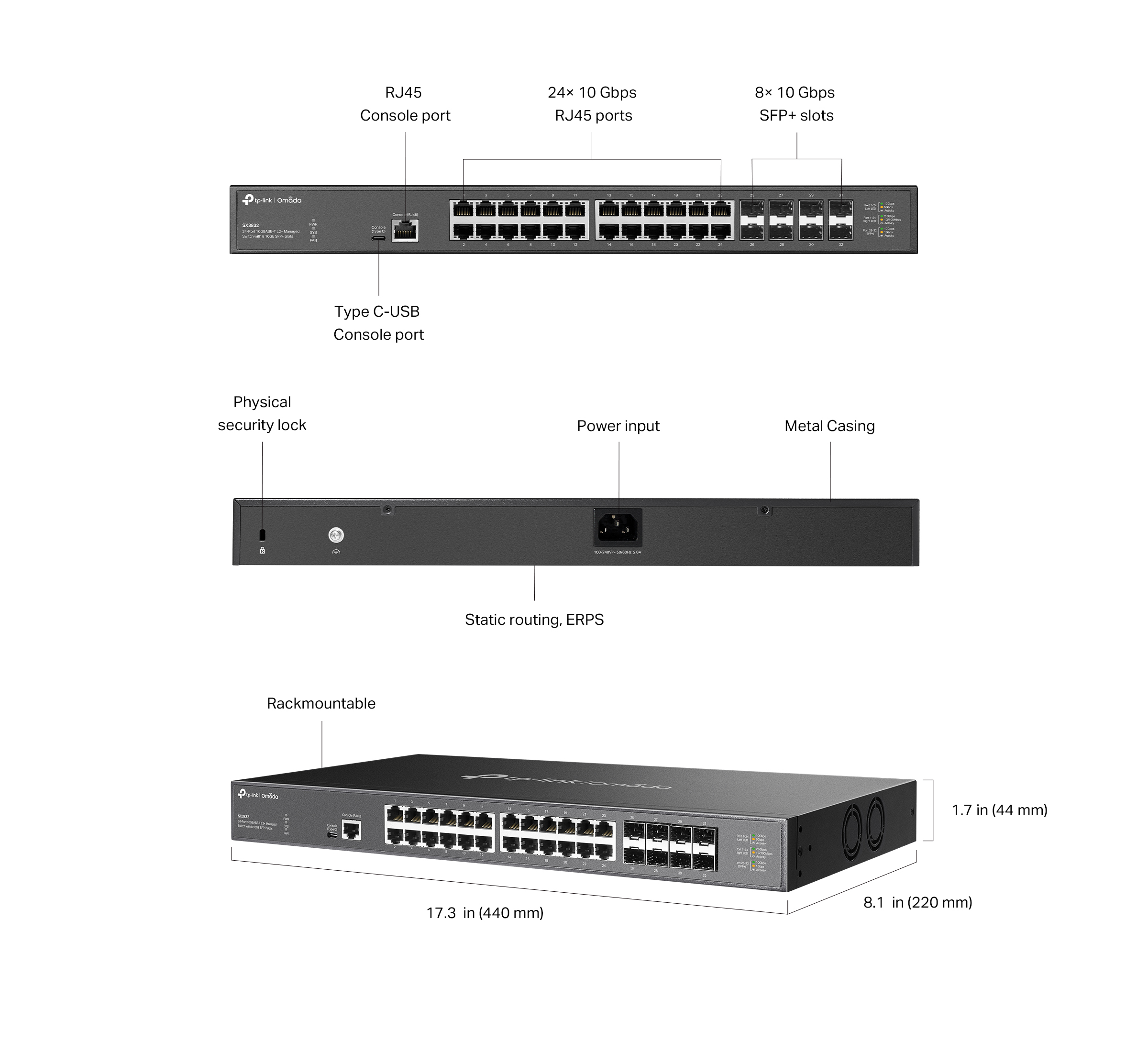 24-портов SFP Stackable Lite L3 управляван комутатор TP-Link Omada Campus SG5428XF с 4x 10G порта (v)