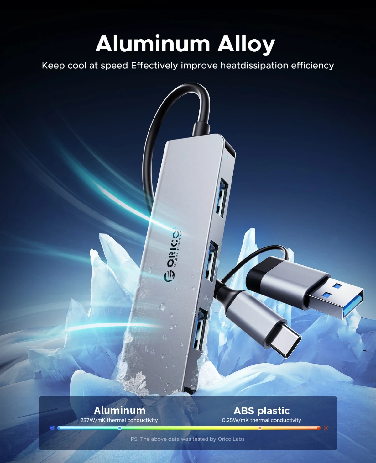 Orico Orico хъб USB3.0/2.0 HUB 4 port, Aluminum AH-A13-GY - AH-A13-GY-BP