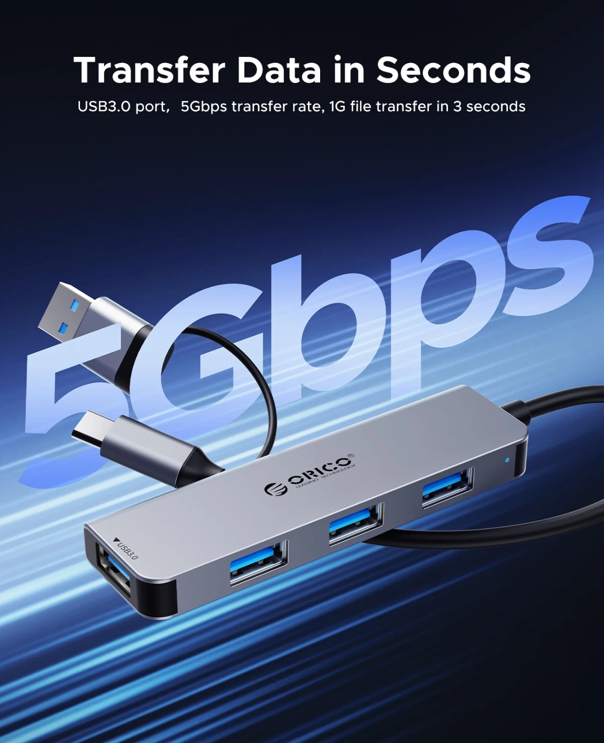 Orico Orico хъб USB3.0 HUB 4 port W5PH4-U3 - W5PH4-U3-V1-BK