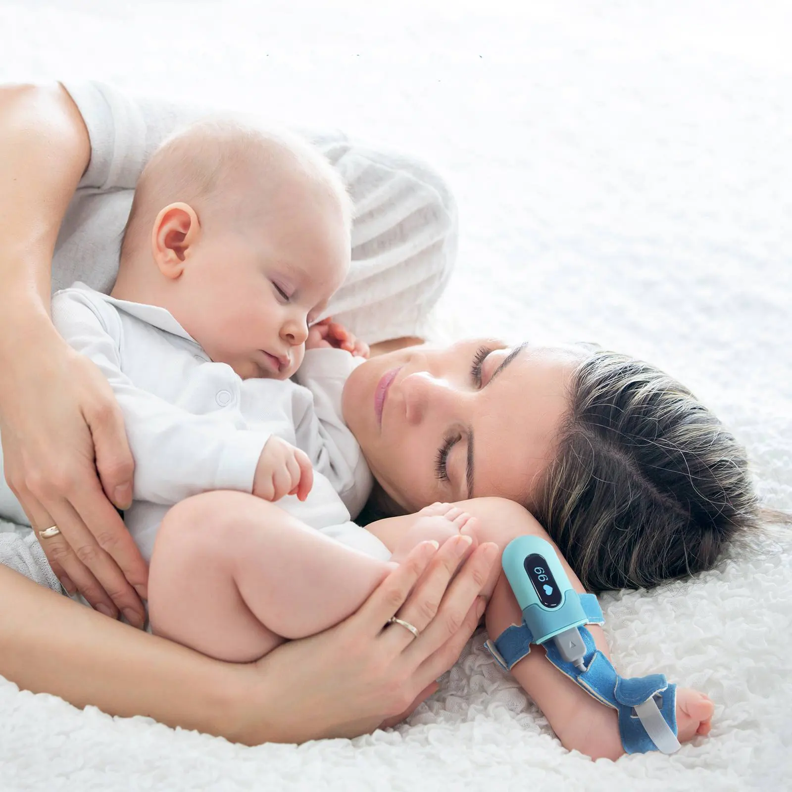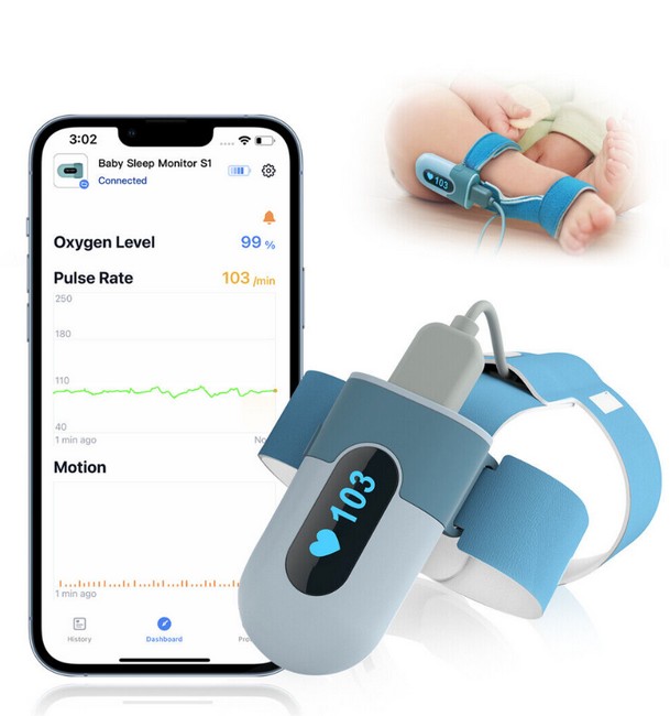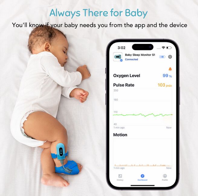 Проследявайте непрекъснато сърдечната честота на бебето, средното ниво на кислород и движението на тялото всяка секунда.