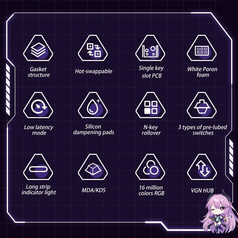 VGN VGN професионална безжична геймърска механична клавиатура Wireless Professional V87 PRO Diana Aniya Switches, BT5.0, 2.4G - V87-PRO-DIANA-AN
