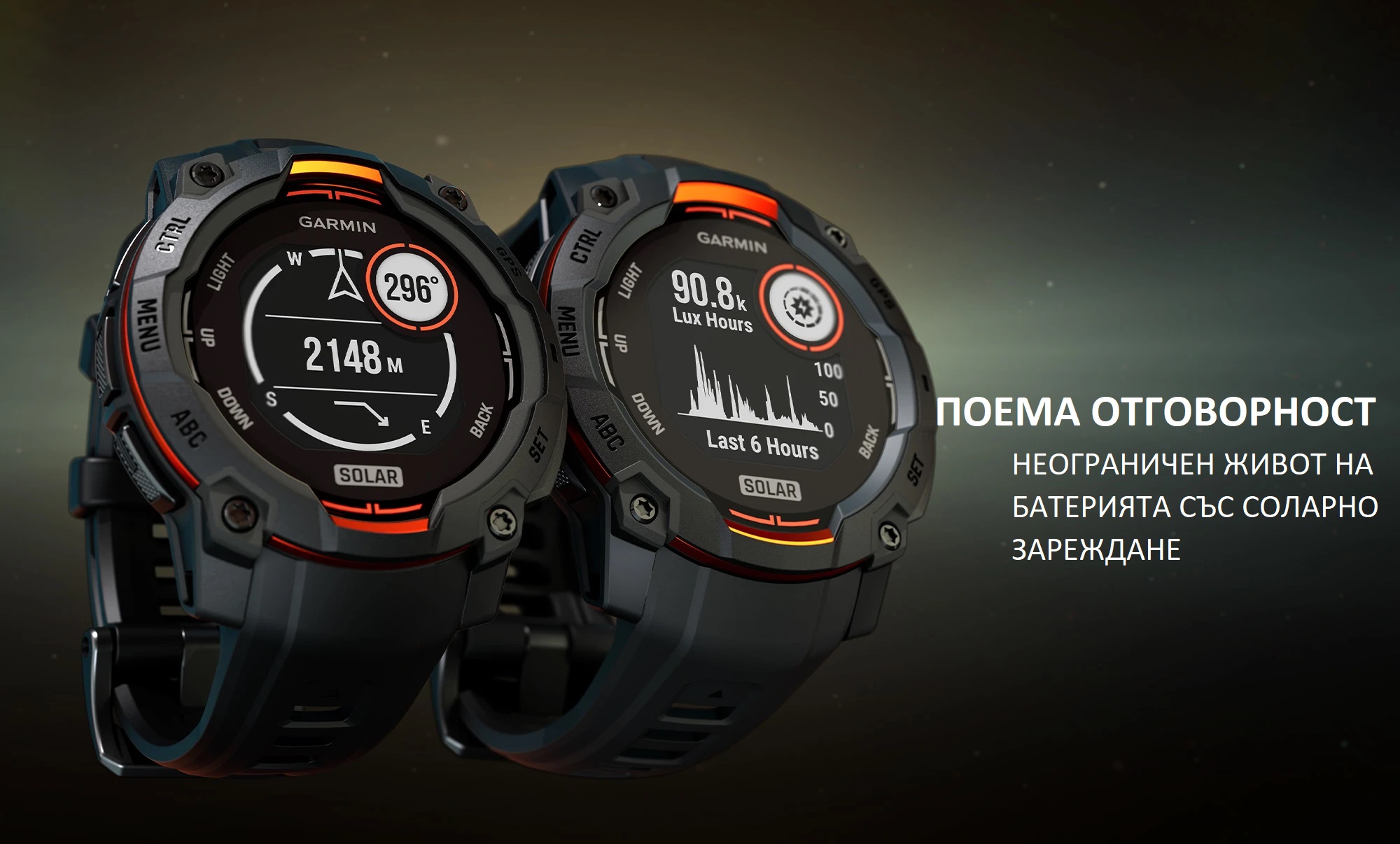 Garmin Instinct 3 - 50 мм, Solar - Instinct 3 - 50 мм, Solar - Black с Charcoal каишка - 010-02935-00