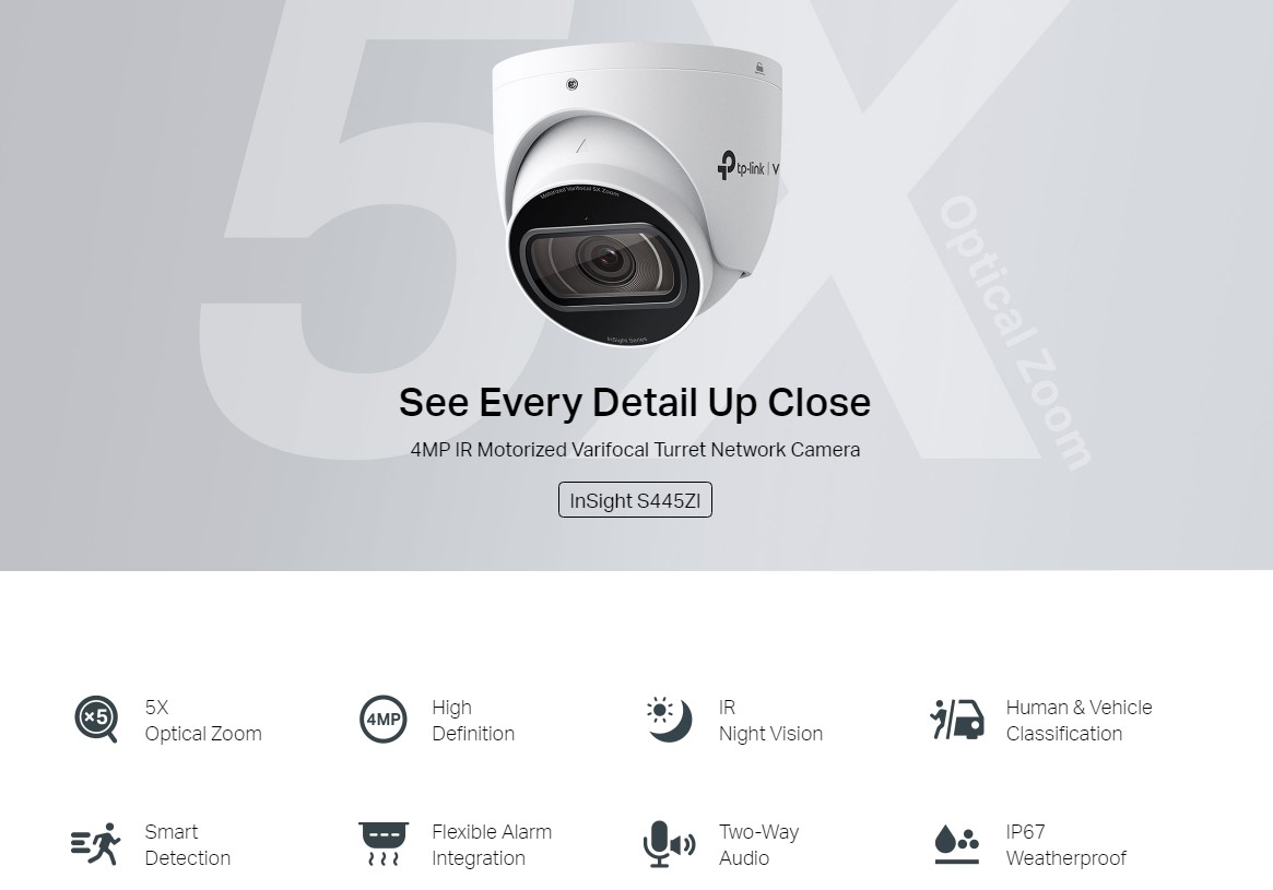 4MP външна IR моторизиранаVarifocal Bullet мрежова камера TP-Link VIGI InSight S345ZI, H.265+