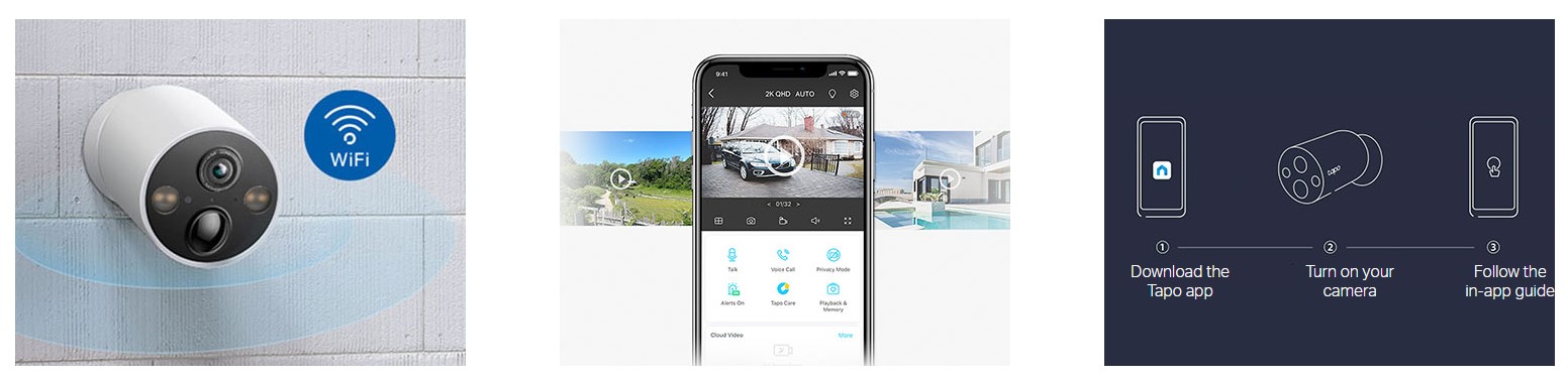 IP камерa TP-Link Tapo C206, куполна PT (Pan/Tilt) камера, 2Mpix(1920x1080@30fps), 4.0mm обектив, H.264, IR осветеност (до 12m), външна IP65, Wi-Fi, microSD слот до 512GB, микрофон и говорител