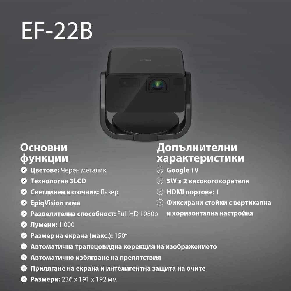 Epson CO-FH02, Full HD 1080p (1920 x 1080, 16:9), 3000 ANSI lumens, 16 000:1, USB 2.0, HDMI, Android TV - V11HA85040