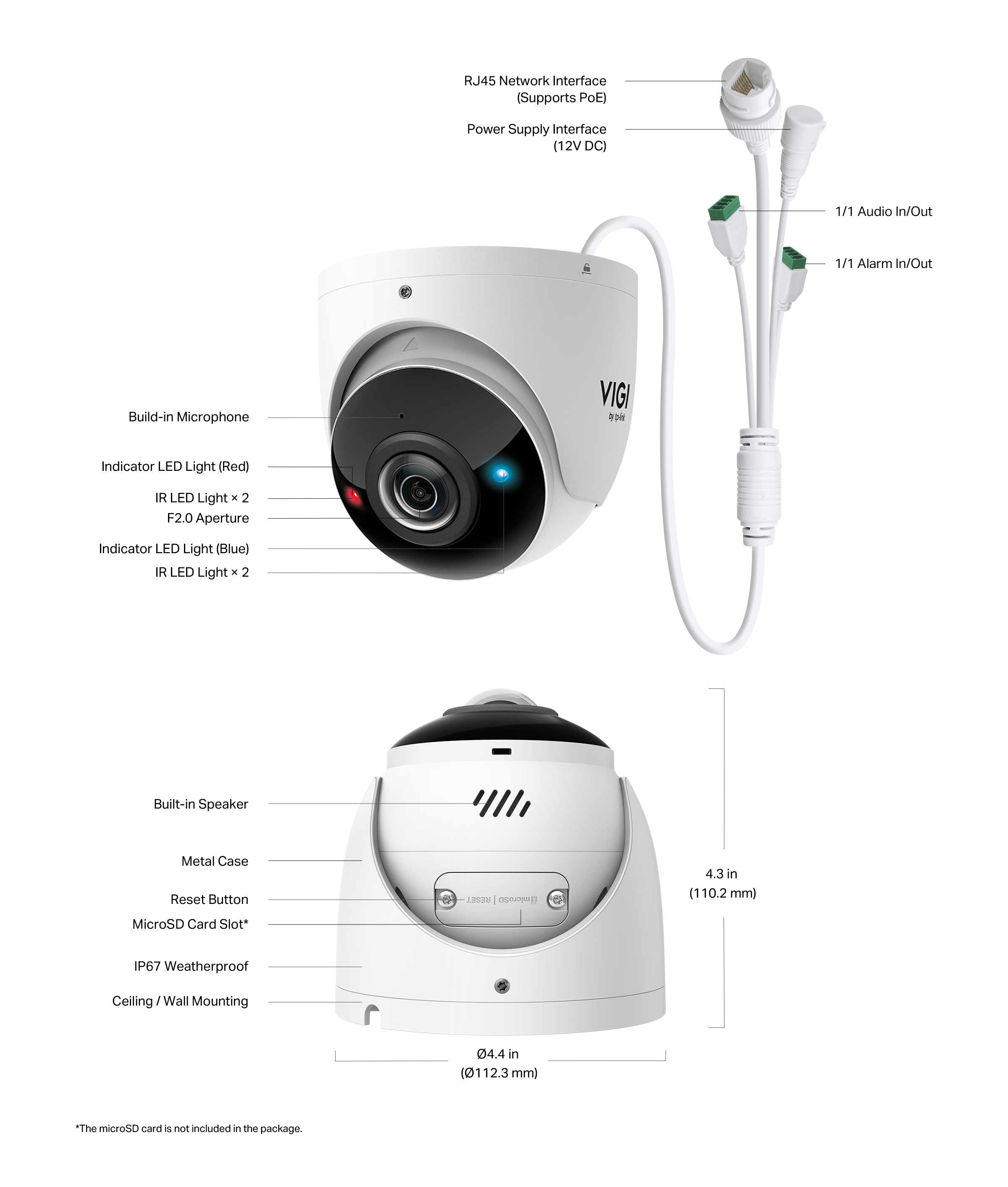 IP камерa TP-Link Tapo C206, куполна PT (Pan/Tilt) камера, 2Mpix(1920x1080@30fps), 4.0mm обектив, H.264, IR осветеност (до 12m), външна IP65, Wi-Fi, microSD слот до 512GB, микрофон и говорител