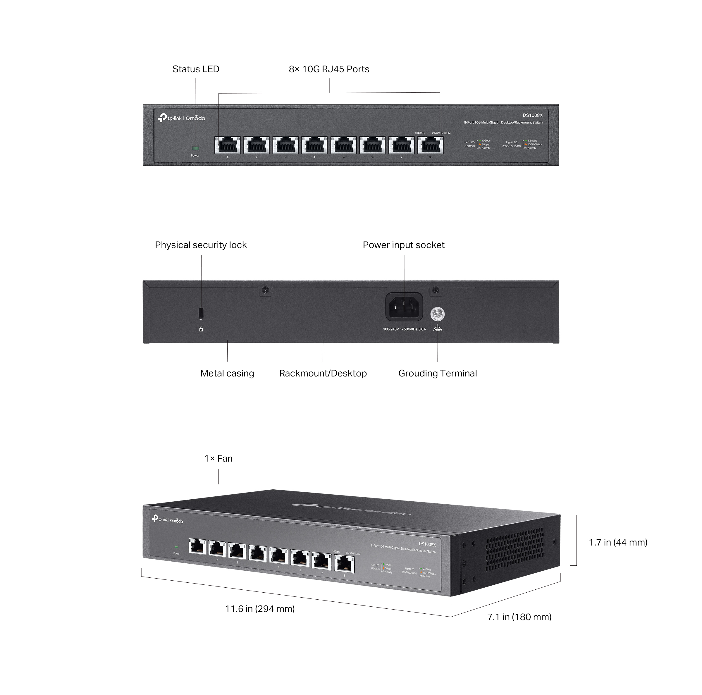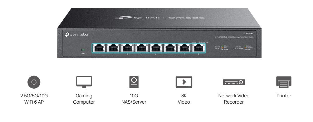 8-портов 10G неуправляем Desktop/Rackmount комутатор TP-Link Omada DS1008X (v)