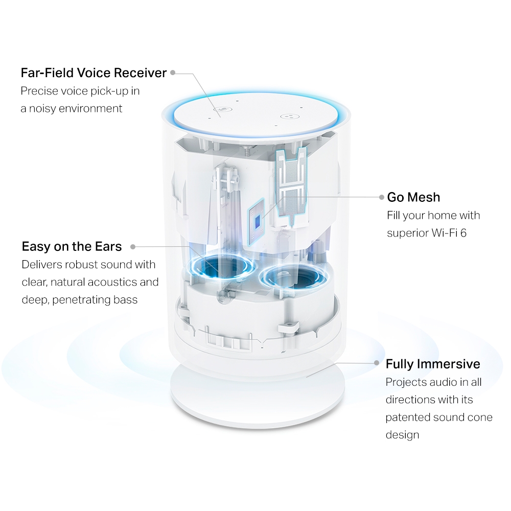 Безжична Wi-fi система TP-Link Deco Voice X20 (2-pack), 1800Mbps, 2.4GHz (574Mbps), 5GHz (1201Mbps), Wireless AX, 1x LAN 10/100/1000bps, 1x WAN 10/100/1000bps, 2 вътрешни антени
