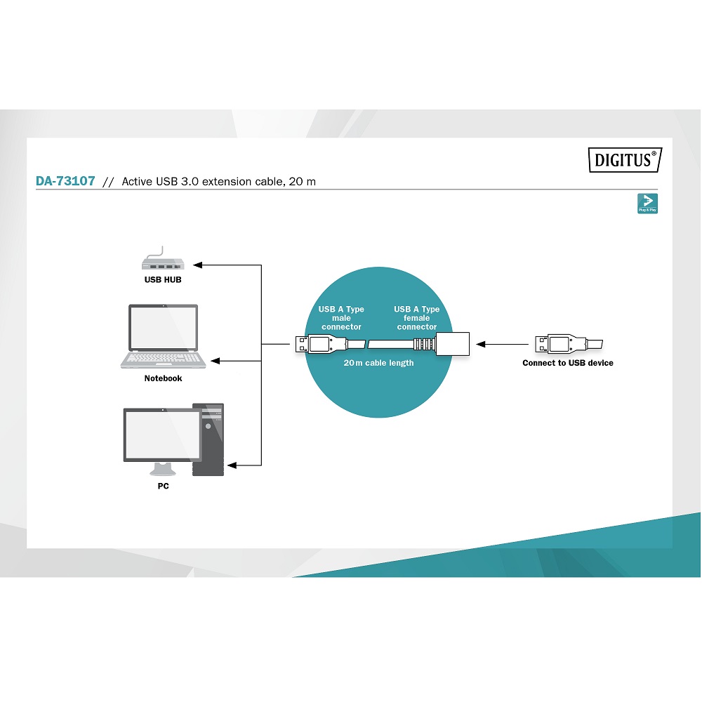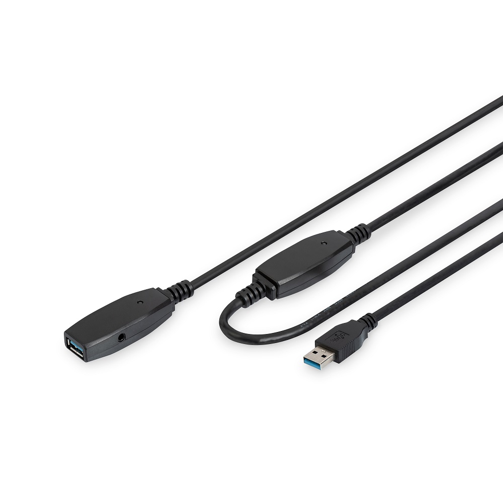 DIGITUS USB 3.0 активен удължителен кабел, M/F, черен, 20.0 м - DA-73107