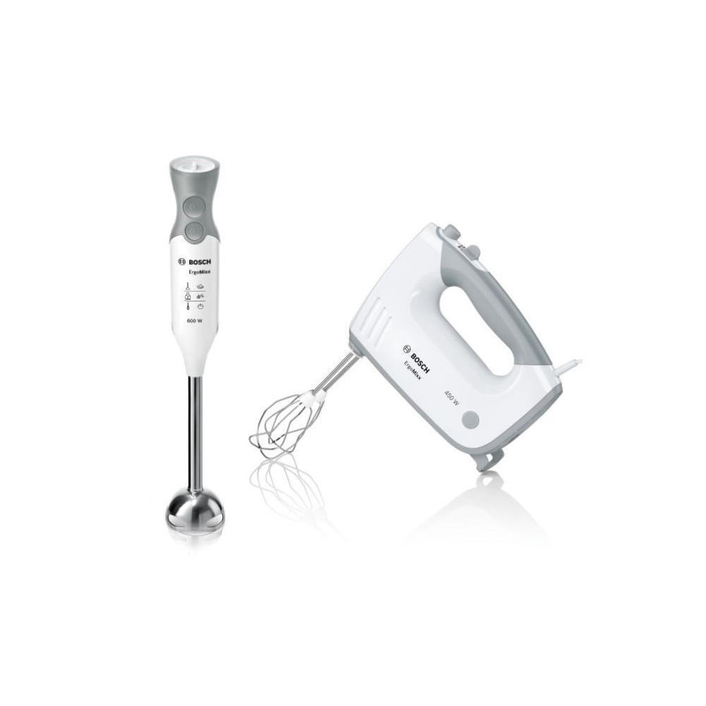 Bosch MFQ36440, Hand mixer, ErgoMixx, 450 W, Included blender & transparent jug, White - MFQ36440