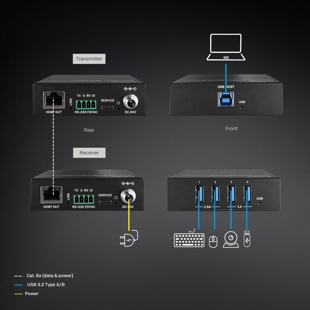 LINDY USB 3.2 Gen 1 HDBaseT екстендър, Cat. 6A, 100.0 м - LNY-43410