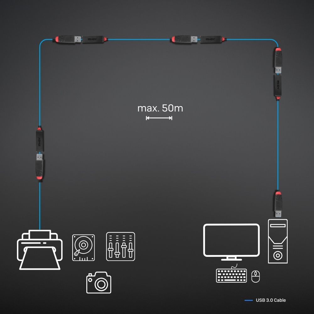LINDY USB 3.0 активен удължител, 30.0 м - LNY-43362