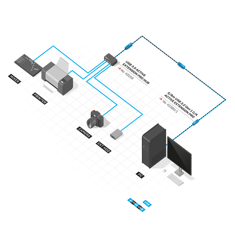 LINDY Хибриден USB 3.2, 10Gbps Type A кабел, 35.0 м - LNY-43357