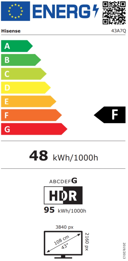 Hisense 43" A7Q, 4K Ultra HD 3840x2160, QLED, FALD, Quantum Dot, HDR 10+, HLG, Dolby Vision, Dolby Atmos - 43A7Q