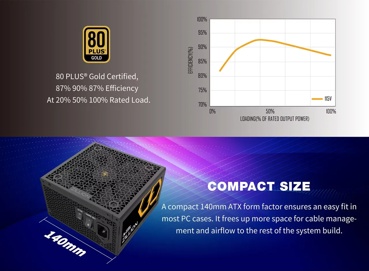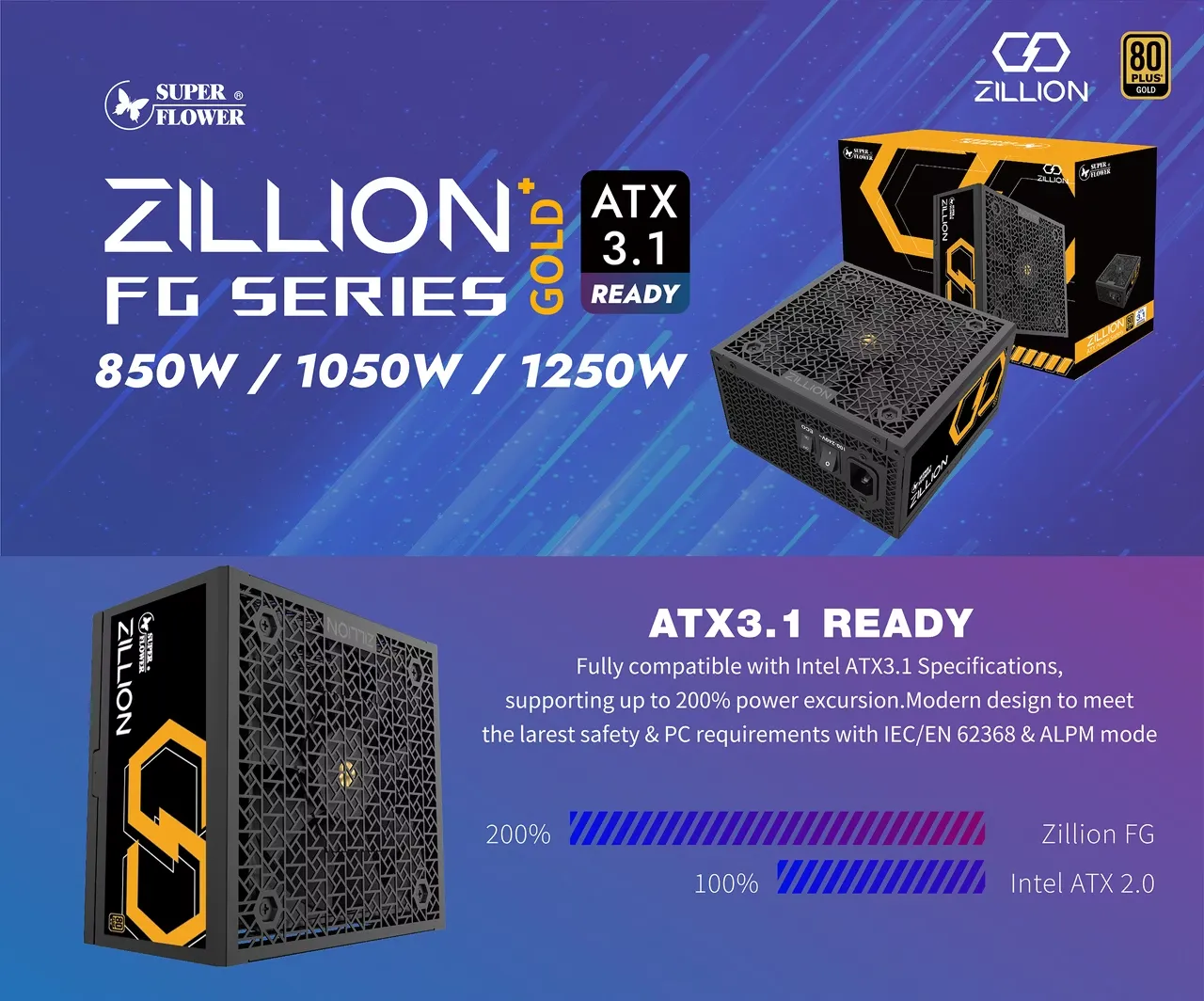 Захранване Super Flower Zillion FG Gold 1250W ATX 3.1, 80 Plus Gold, Fully Modular - SF-1250Z12FG