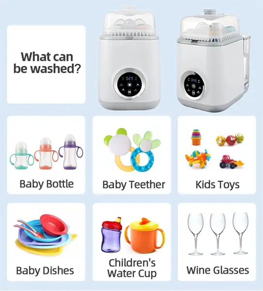 Идеален за всеки дом, уредът предлага спестяващо време решение „всичко в едно“ за поддържане на шишетата и аксесоарите за хранене стерилни.