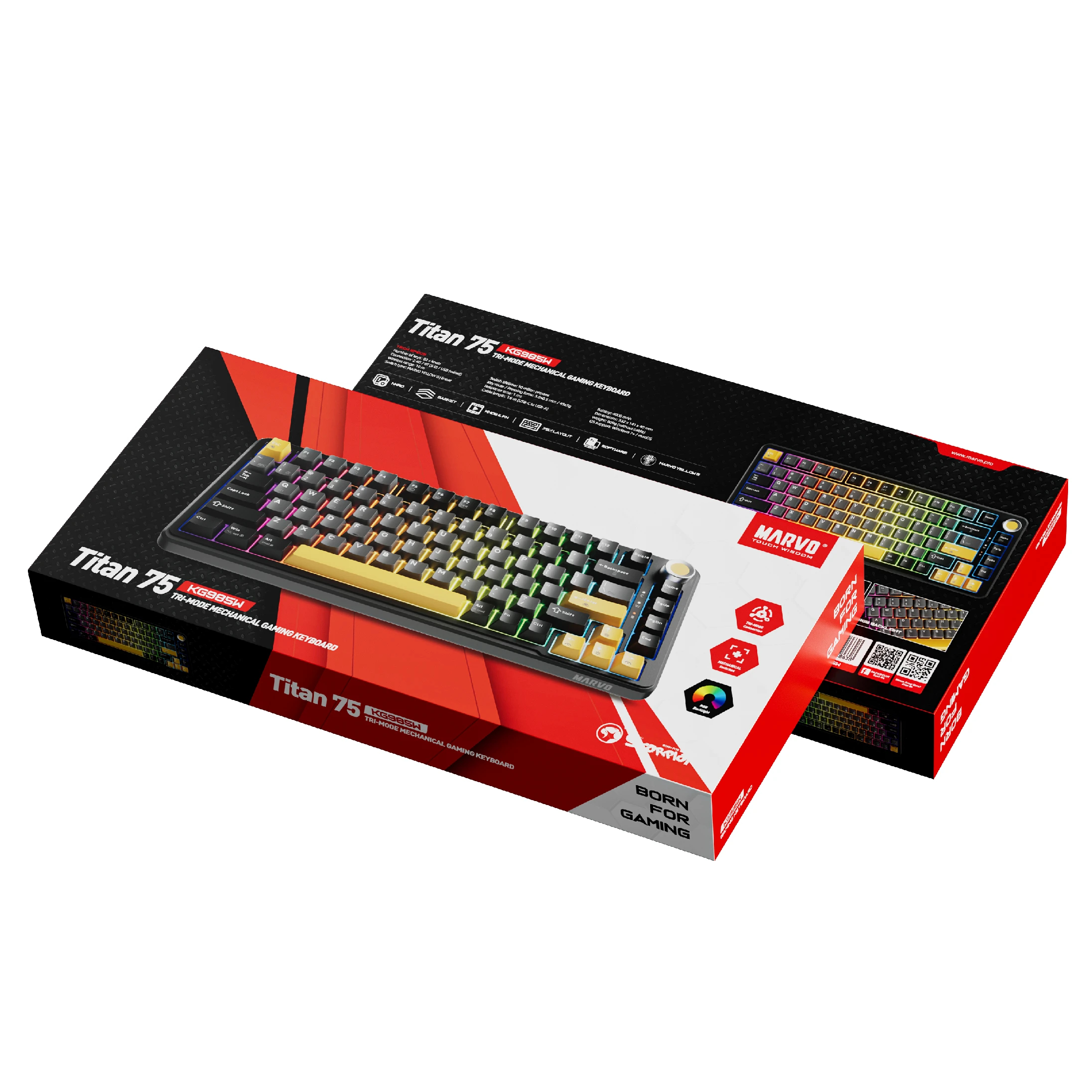 LORGAR KBP7075W, Wireless 75% Mechanical Gaming Keyboard Pro, Black/yellow, EN layout - LRG-KBP7075W-YL-US