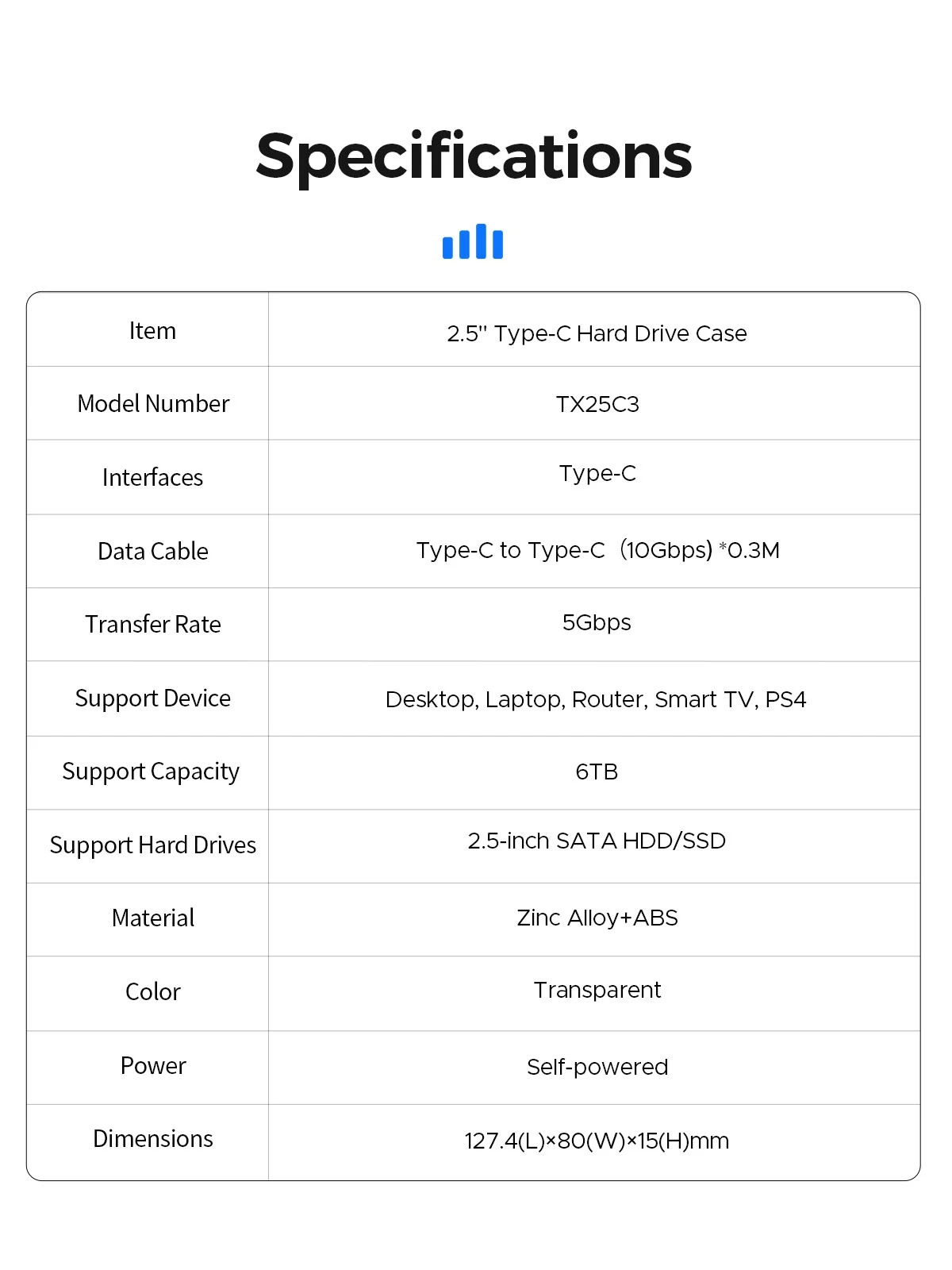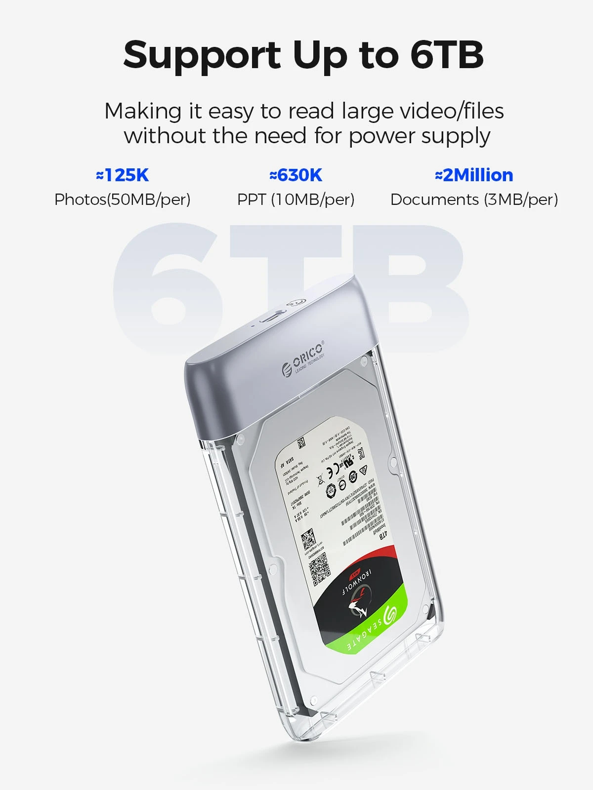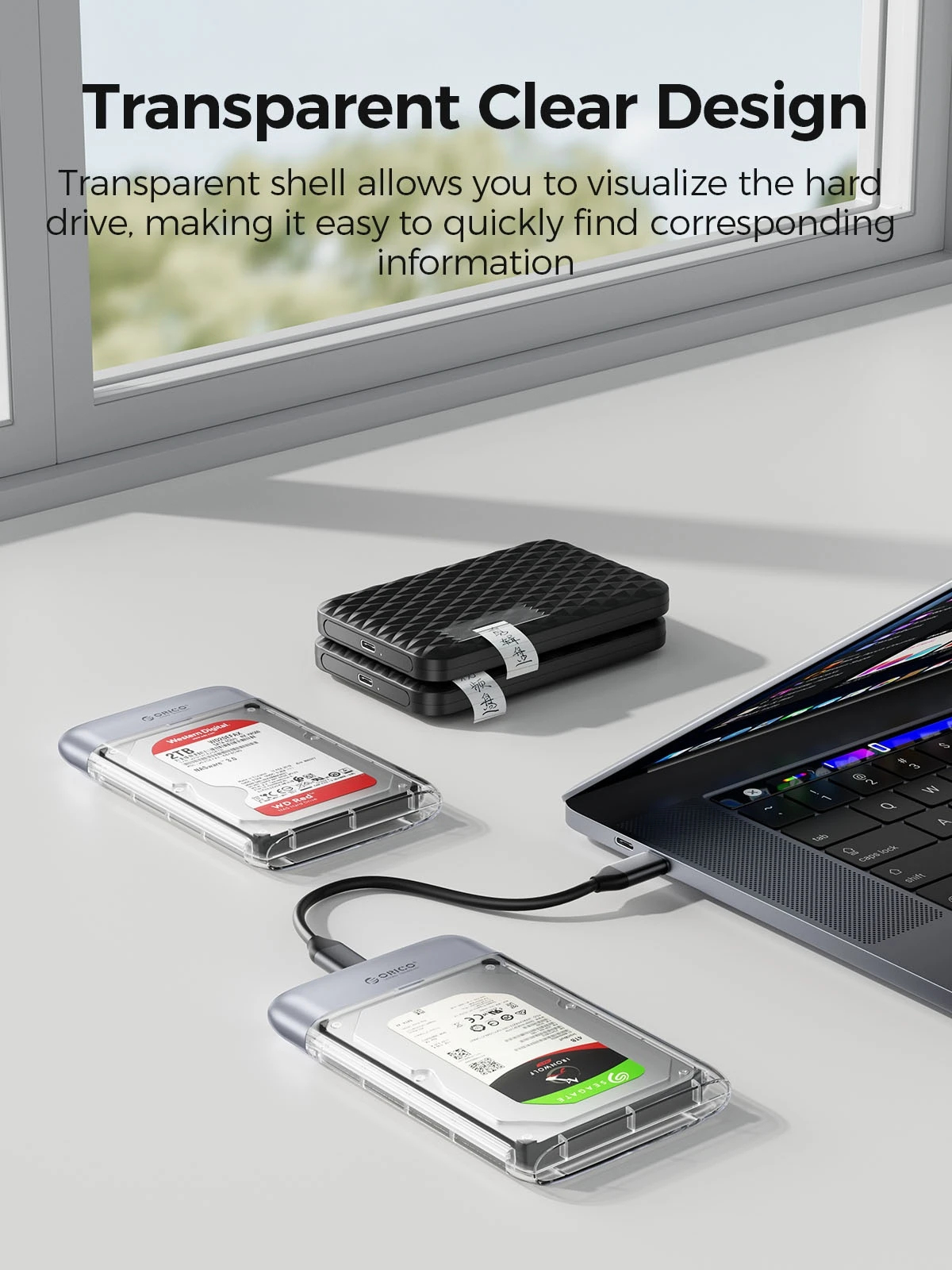 Orico Orico външна кутия за диск Storage Case 2.5 inch 5Gbps USB-C Transparent - TX25C3-GY-BP