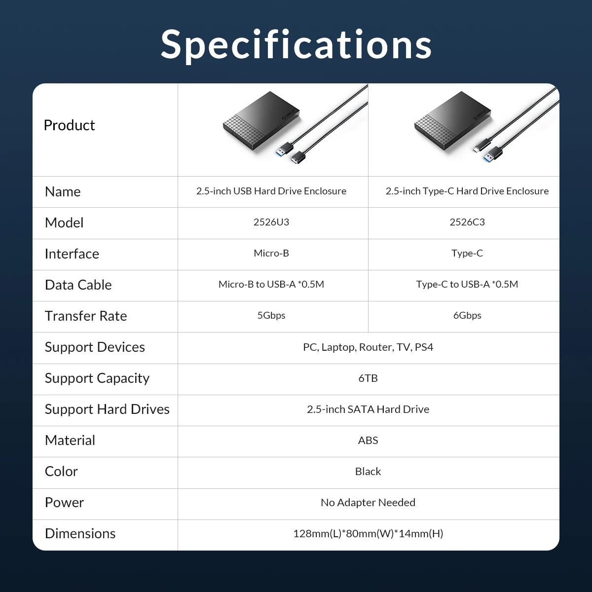 Orico Orico външна кутия за диск Storage Case 2.5 inch USB3.0 Black 2526U3-V1-BK - 2526U3-V1-BK-EP