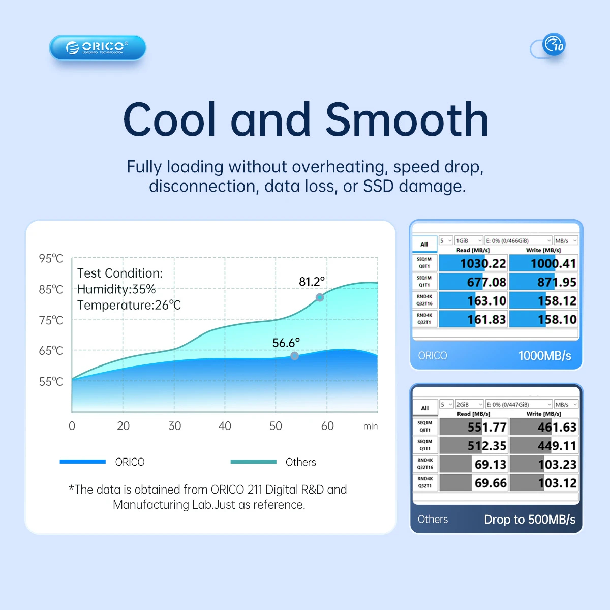 Orico Orico външна кутия за диск Storage Case M.2 NVMe M/B key 10 Gbps Blue PWM2-G2 - PWM2-G2-BL-EP