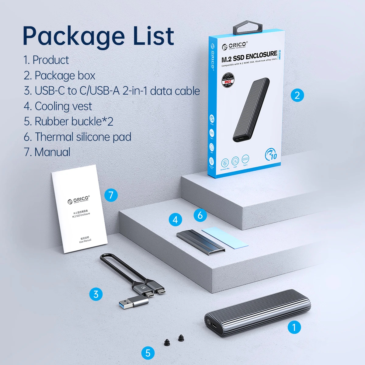 Orico Orico външна кутия за диск Storage Case M.2 NVMe M-key 10 Gbps, Aluminium AM2C3-G2-GY - AM2C3-G2-GY-BP