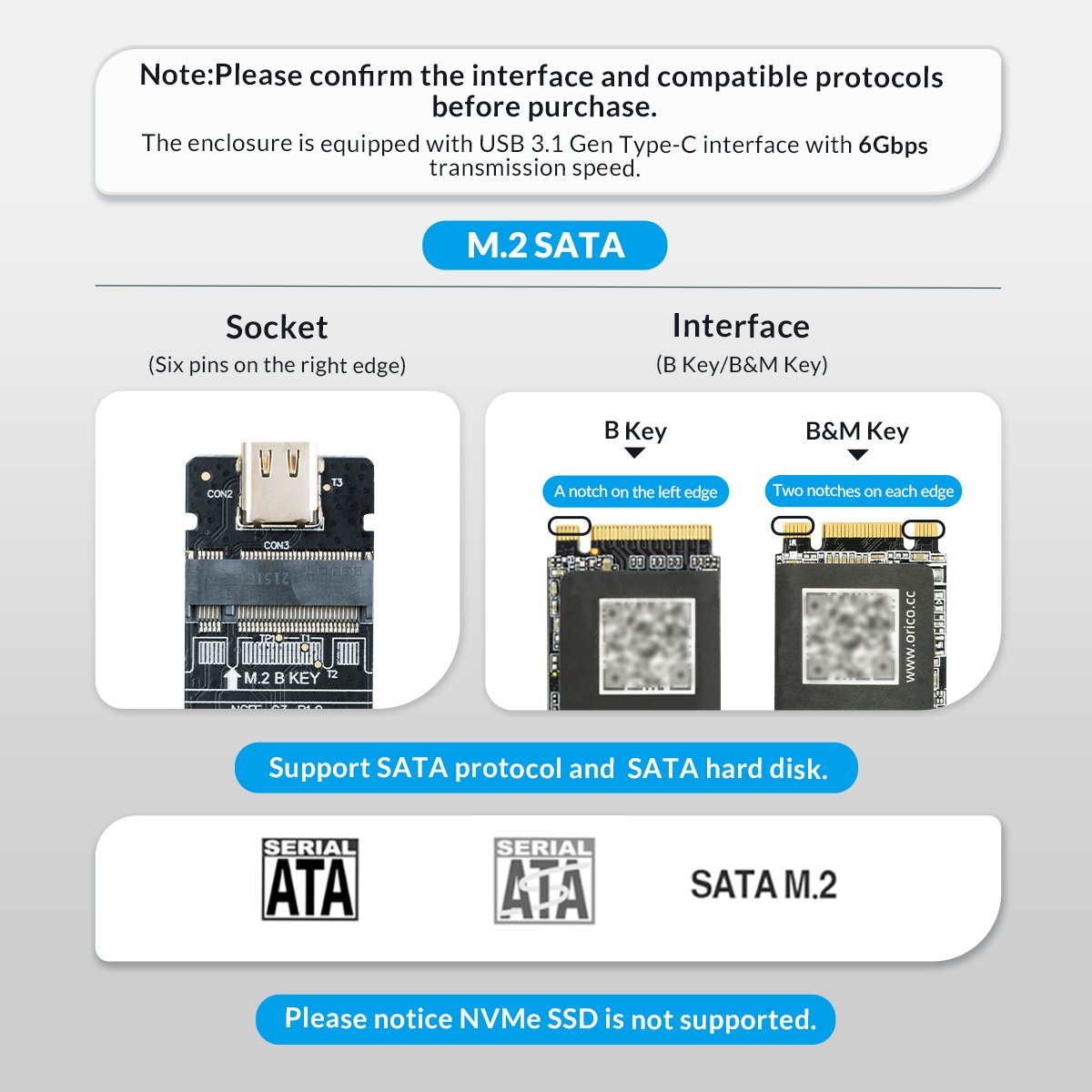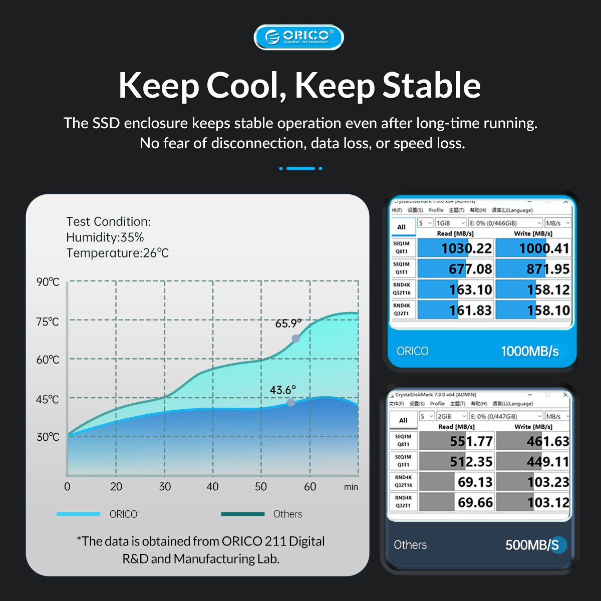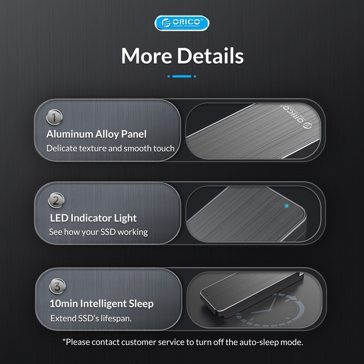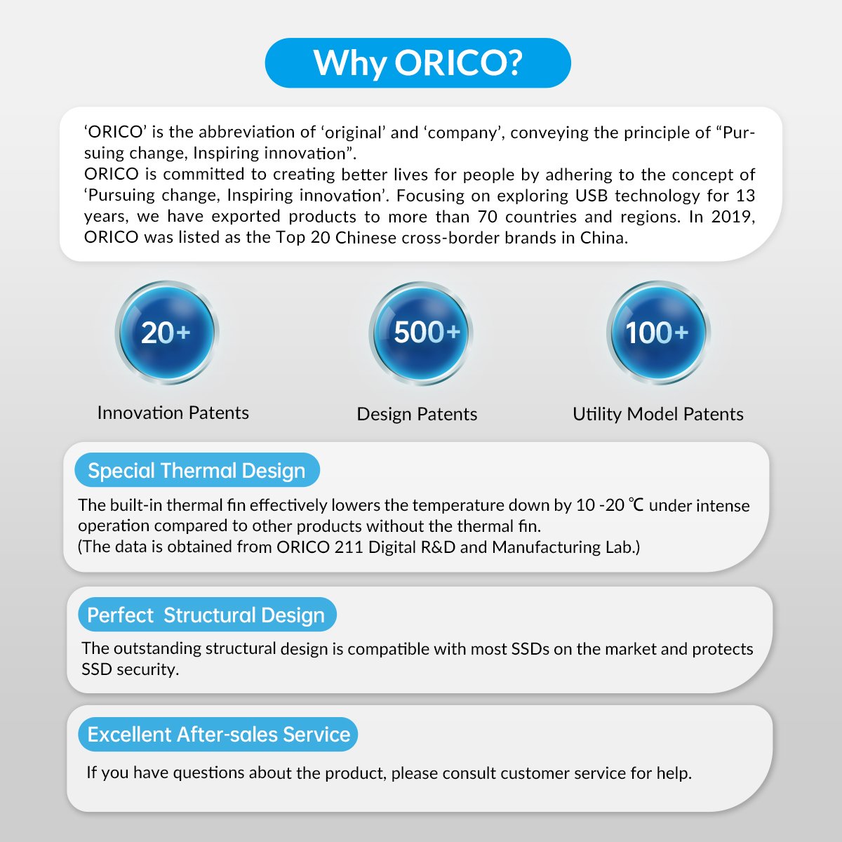 Orico Orico външна кутия за диск Storage Case M.2 NVMe M key USB3.1 Gen2 Type-C, 10Gbps HM2-G2-BK - HM2-G2-BK-BP