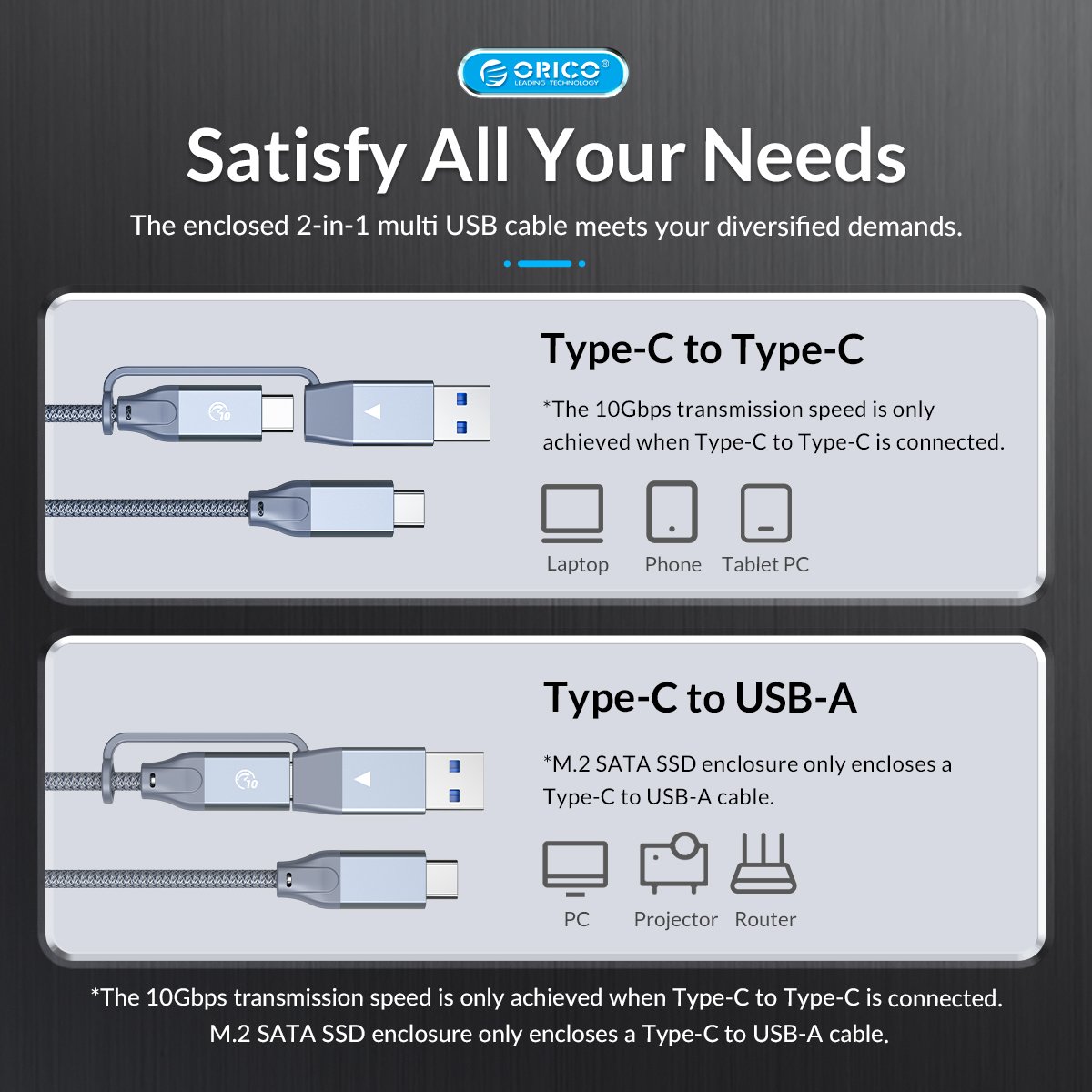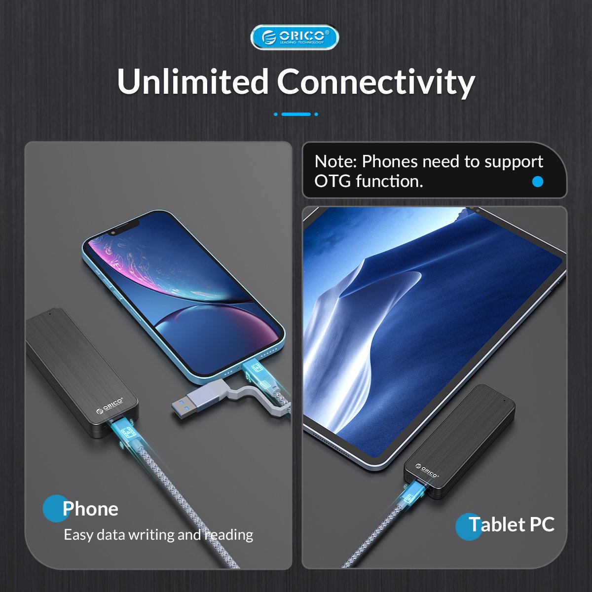 Orico Orico външна кутия за диск Storage Case M.2 NVMe/SATA M/B key USB3.1 Type-C/A, Silicone Protective Case, 10Gbps - AXM2S-G2-V1-GY-BP