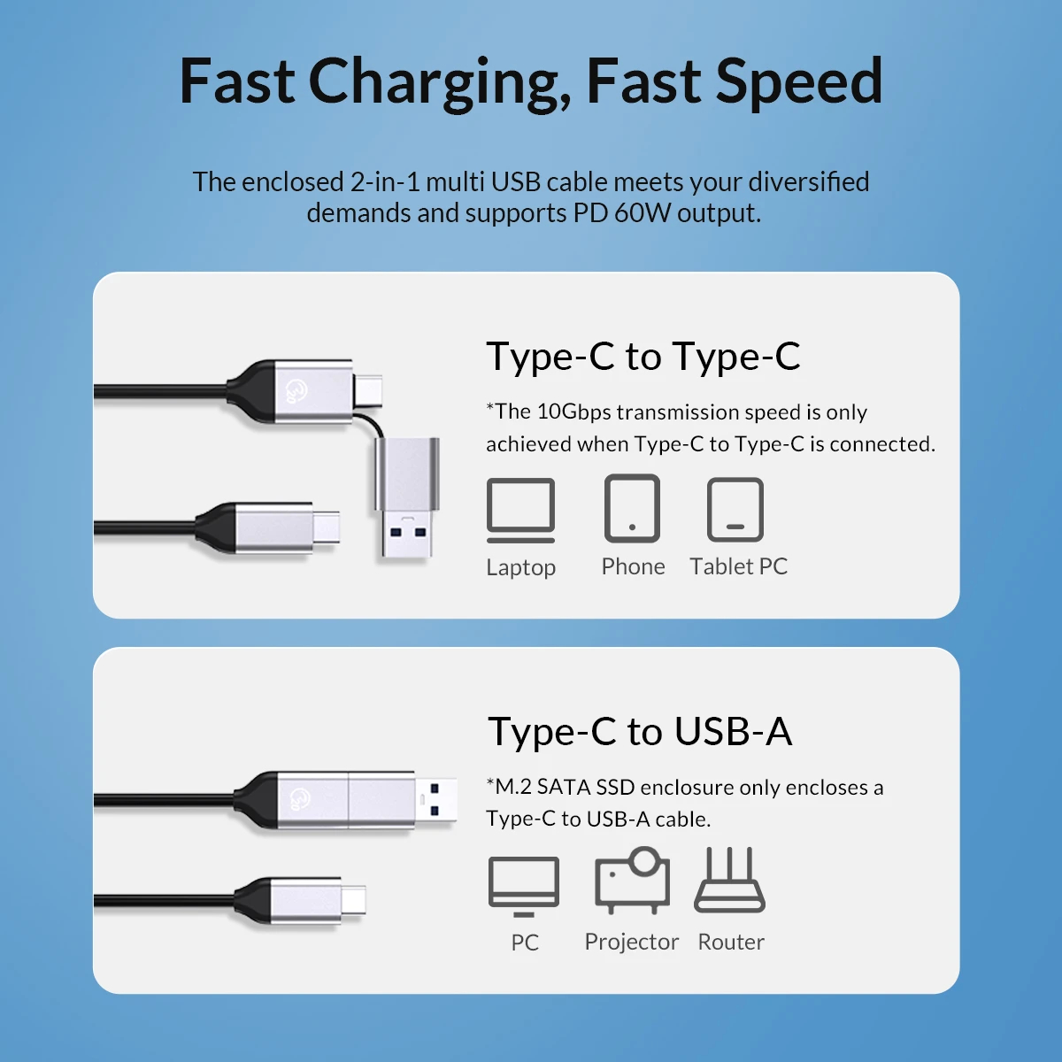 Orico Orico външна кутия за диск Storage Case M.2 NVMe M key USB3.1 Gen2 Type-C, 10Gbps HM2-G2-BK - HM2-G2-BK-BP