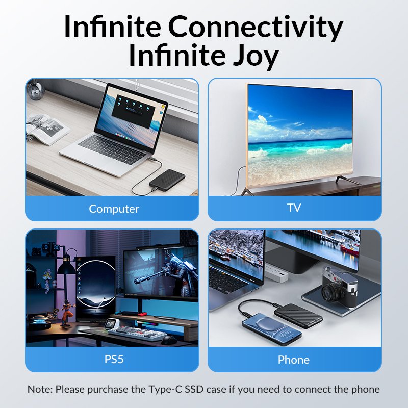 Orico Orico външна кутия за диск Storage Case 2.5 inch 5Gbps USB-C Transparent - TX25C3-GY-BP