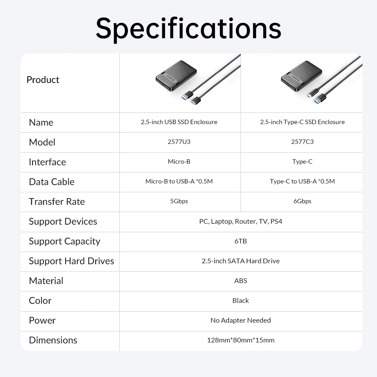 Orico кутия за диск Storage - Case - 2.5 inch USB-C - 2577C3-V1-BK (2577C3-V1-BK-EP)
