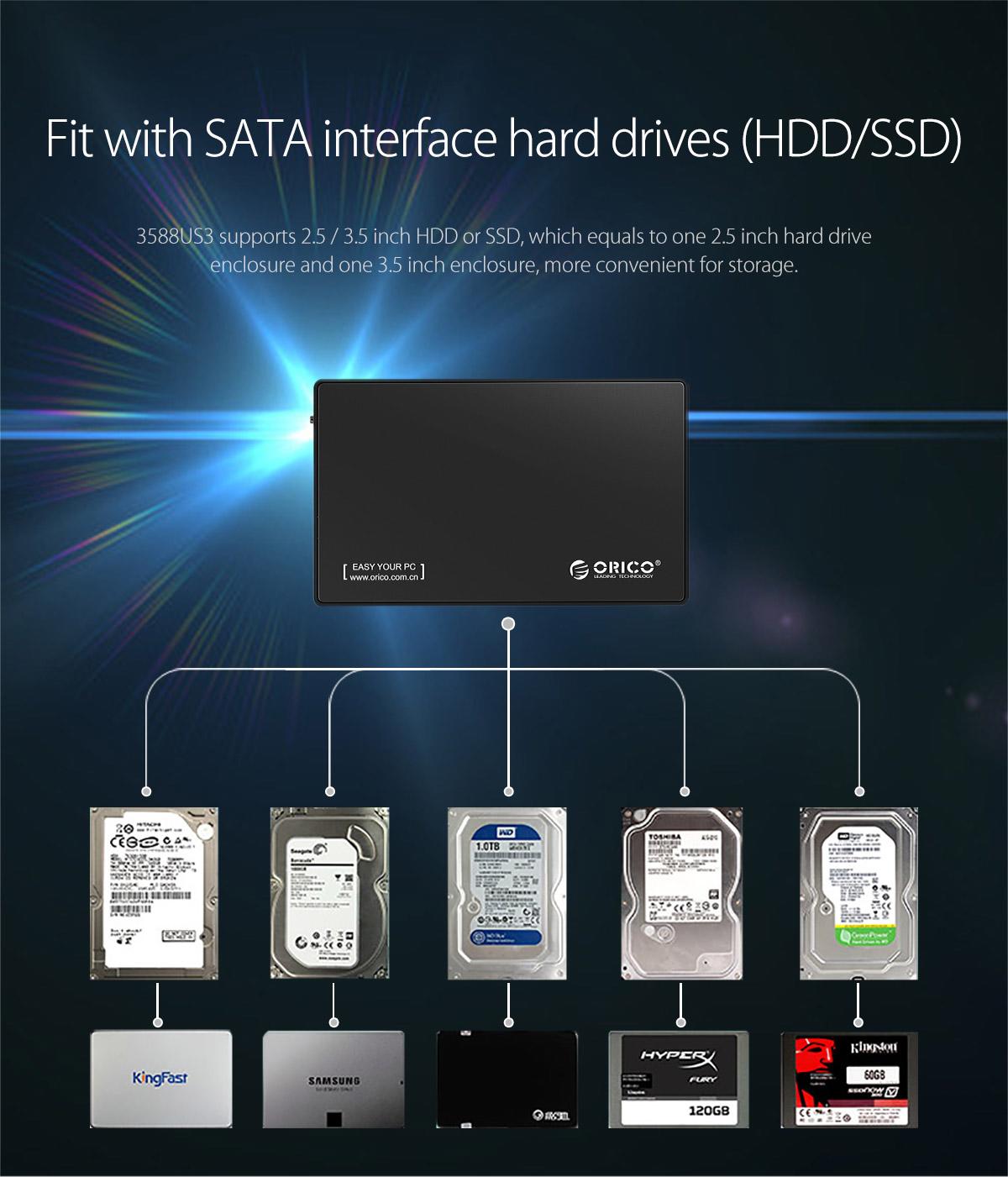 Orico Orico кутия за диск Storage Case 3.5 inch Vertical, USB3.0, Power adapter, UASP, black 7688U3-BK - 7688U3-EU-BK-BP