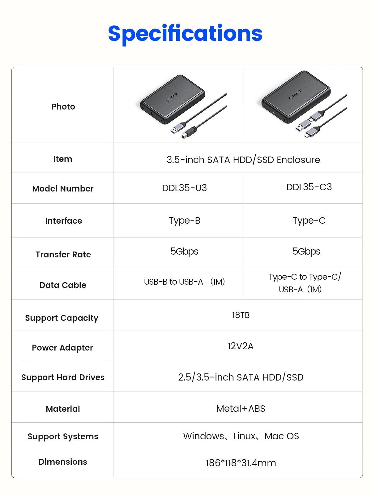 Orico кутия за диск Storage - Case - 3.5 inch USB-A black - DDL35-U3-EU-BK (DDL35-U3-EU-BK-BP-HW)
