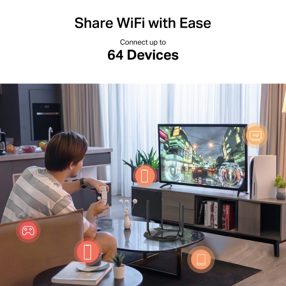 Mercusys MR60X, 1500Mbps, 2.4GHz (300 Mbps)/5GHz (1201 Mbps), Wireless AX, 2x 10/100/1000Mbps LAN, 1x 10/100/1000Mbps WAN, 4x външни антени