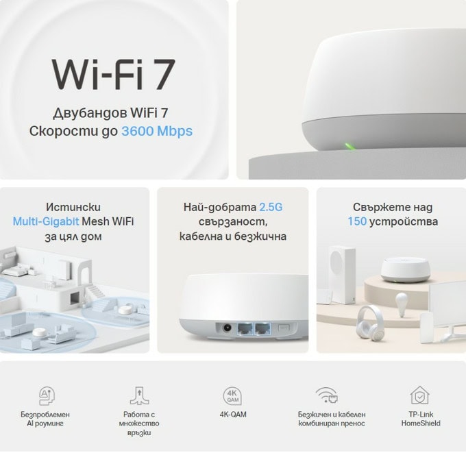 Безжична Wi-fi 7 Mesh система TP-Link Deco BE65(3-pack) BE9300 (v)