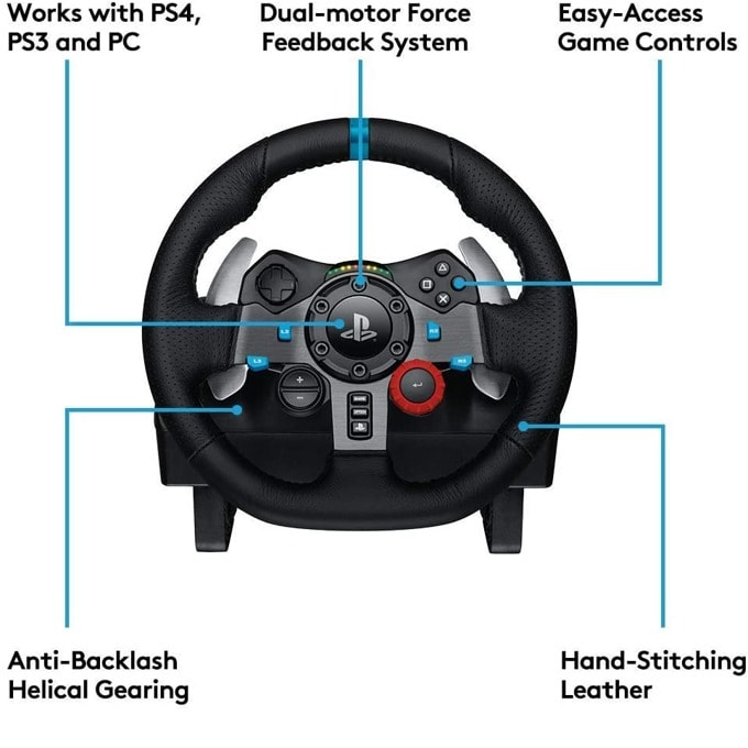 Волан с педали Logitech G29 Driving Force (941-000112), PC, PS3/PS4/PS5, състезателен модел, 900 градуса на завъртане, черен