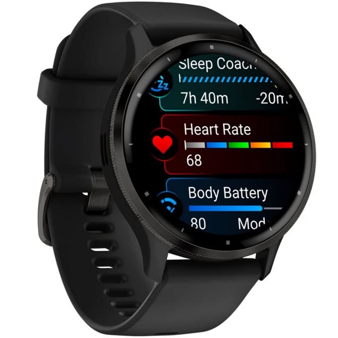 Garmin Venu 3S, 1.2" (3.04cm) AMOLED дисплей, 41 мм, до 10 дни време на работа, 5ATM, Bluetooth, ANT+, Wi-Fi, GPS, пулсомер, следене на съня, черен безел с тъмносив корпус, 010-02785-00