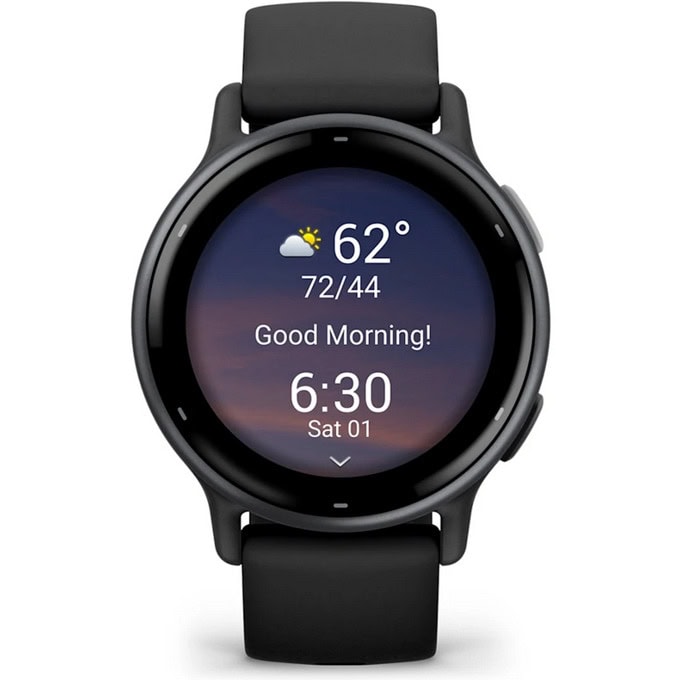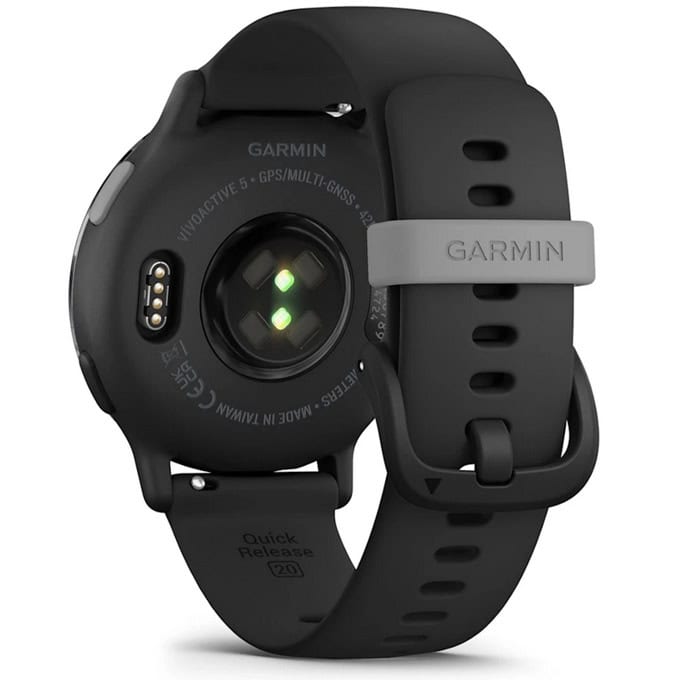 Garmin vivoactive 5 (Slate/Black), 1.2" (3.04cm) AMOLED дисплей, 42 мм, Bluetooth, ANT+, Wi-Fi, GPS, 4GB вградена памет, следене на сърдечен ритъм, измерване на стреса, мониторинг на съня, 5ATM, до 11 дни време на работа, черен, 010-02862-10