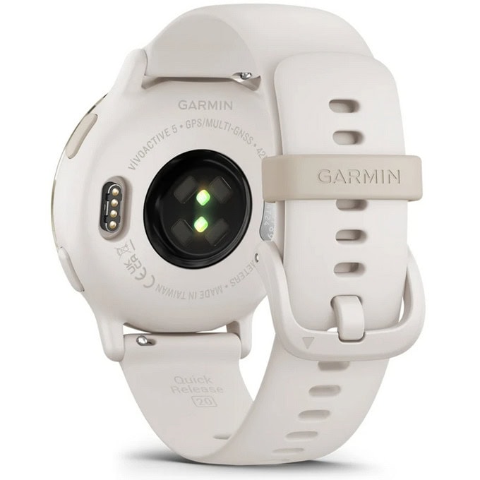 Garmin vivoactive 5 (Cream Gold/Ivory), 1.2" (3.04cm) AMOLED дисплей,42 мм, Bluetooth, ANT+, Wi-Fi, GPS, 4GB вградена памет, следене на сърдечен ритъм, измерване на стреса, мониторинг на съня, 5ATM, до 11 дни време на работа, бежов, 010-02862-11