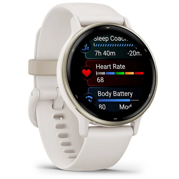Garmin vivoactive 5 (Cream Gold/Ivory), 1.2" (3.04cm) AMOLED дисплей,42 мм, Bluetooth, ANT+, Wi-Fi, GPS, 4GB вградена памет, следене на сърдечен ритъм, измерване на стреса, мониторинг на съня, 5ATM, до 11 дни време на работа, бежов, 010-02862-11 https://stantek.com/?i=227929&q=%D0%A1%D0%BC%D0%B0%D1%80%D1%82+%D1%87%D0%B0%D1%81%D0%BE%D0%B2%D0%BD%D0%B8%D1%86%D0%B8