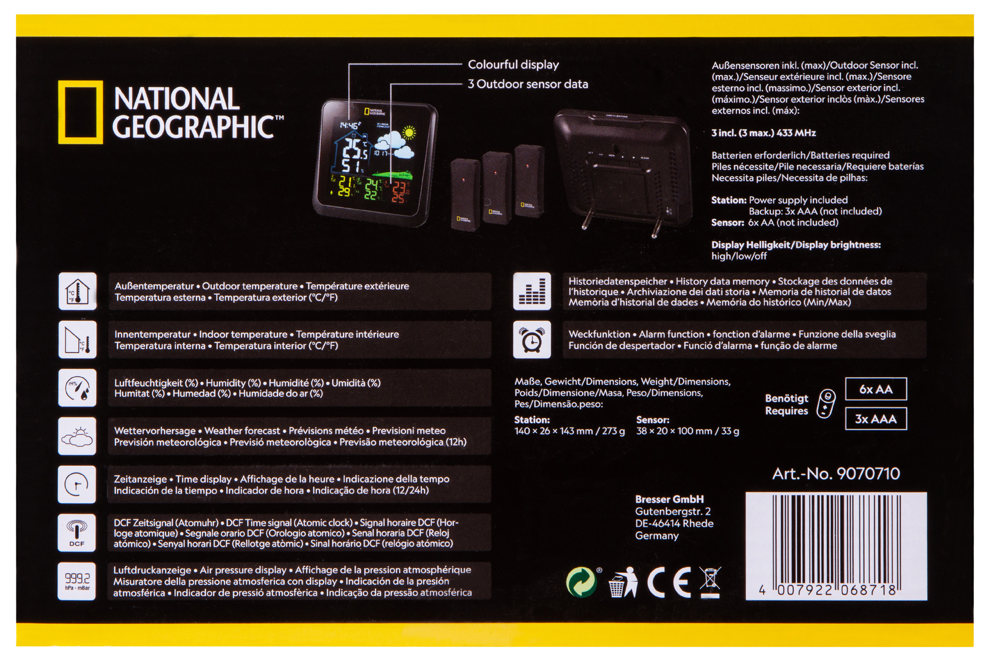 Цветна метеорологична станция Bresser National Geographic VA с 3 външни сензора 4007922068718