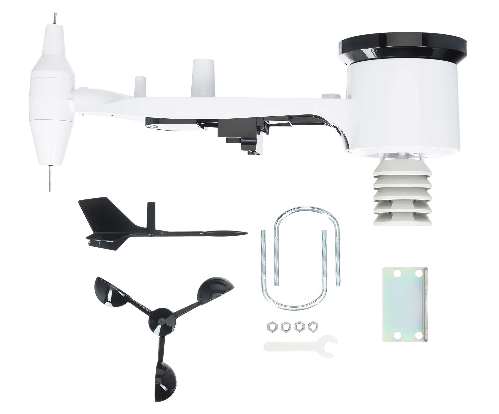 Станцията може да се постави на маса или да се монтира на стена. Тя се захранва с батерии и затова не е необходимо да се съобразявате с разположението на захранващите контакти или да прокарвате, или скривате кабели. В кутията ? е включен многофункционален сензор 5 в 1, предназначен за външен монтаж. Обхватът на сензора е 100 метра (ако между него и базовата станция няма препятствия), като оптималното разстояние е от 20 до 50 метра. Сензорът също се захранва с батерии (в зависимост от температурата на околната среда един комплект батерии може да издържи до 6 месеца). Специален индикатор ще Ви предупреди, когато батериите трябва да се сменят.