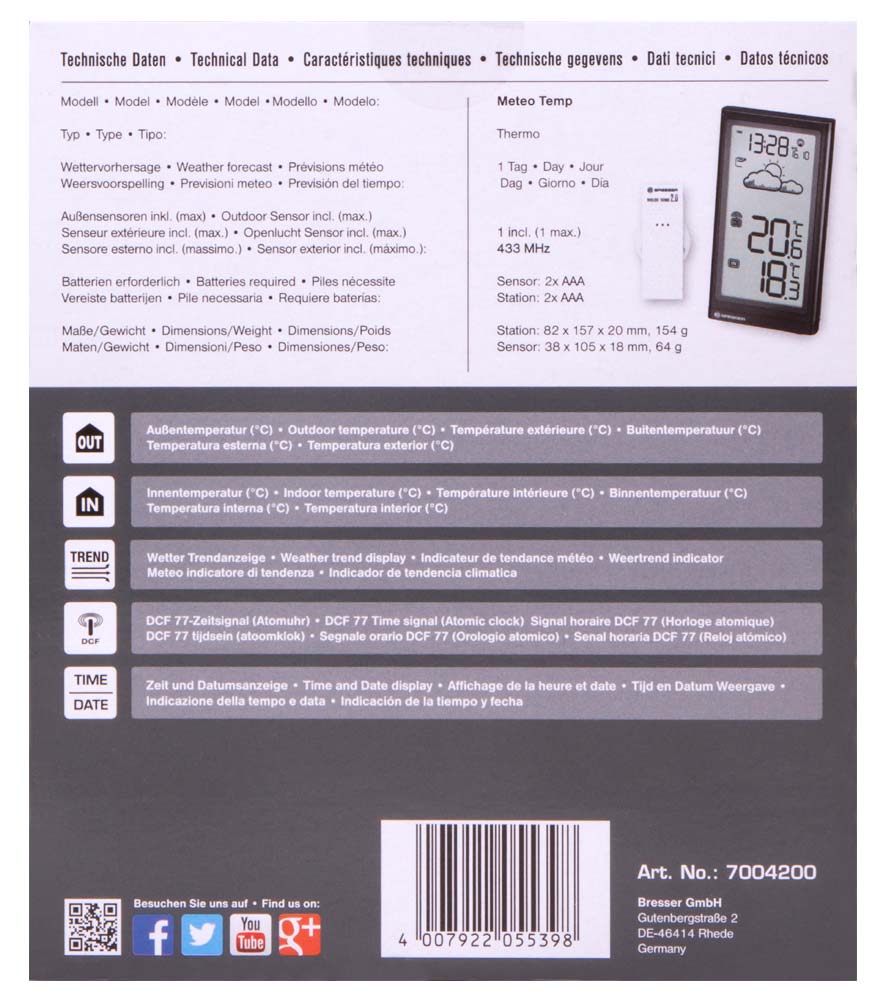 Метеорологична станция Bresser Temeo Hygro Quadro 4007922047454