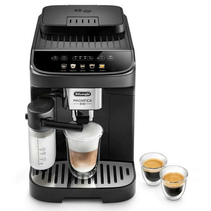 Кафеавтомат DeLonghi Magnifica Evo, 1450W, 15 bar, 1.8л. резервоар, възможност за смляно кафе, черен