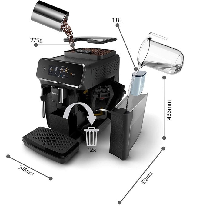 Кафеавтомат Philips EP1224, 1500W, 15 bar, 1.8 л. обем на резервоара, дисплей със сензорен екран, черен
